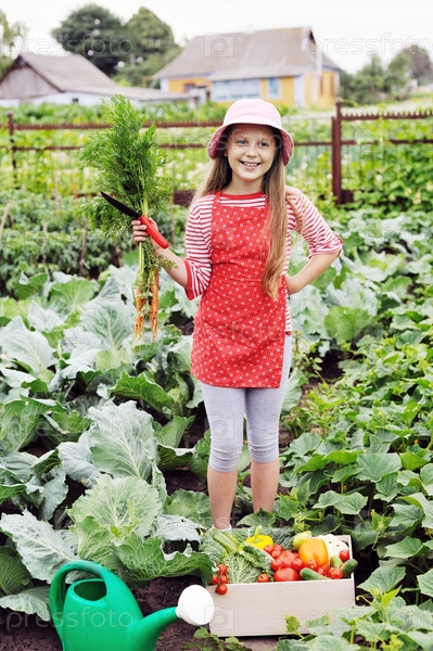 Маленькая девочка в огороде