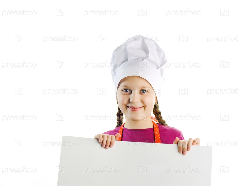 Маленькая девочка в колпаке повара на белом фоне