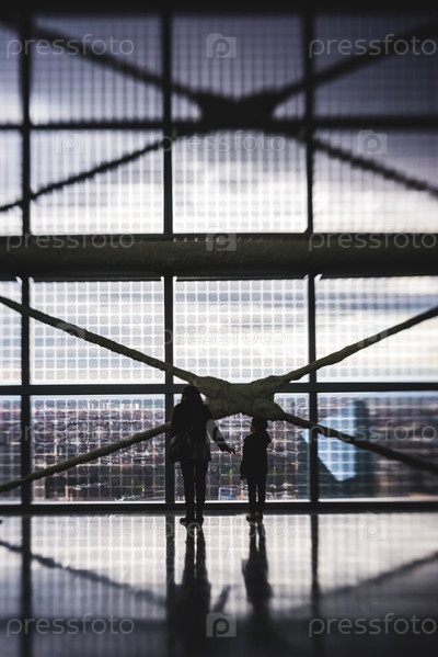 Силуэты людей, смотрящих в окно