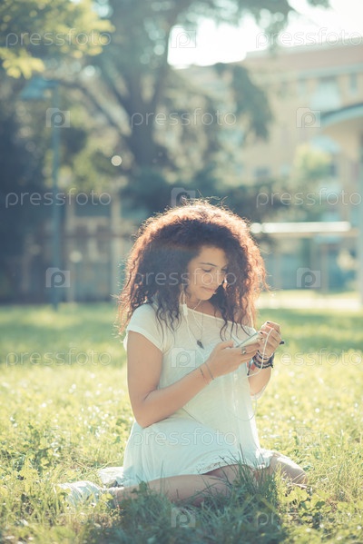 Марокканка слушает музыку на смартфоне
