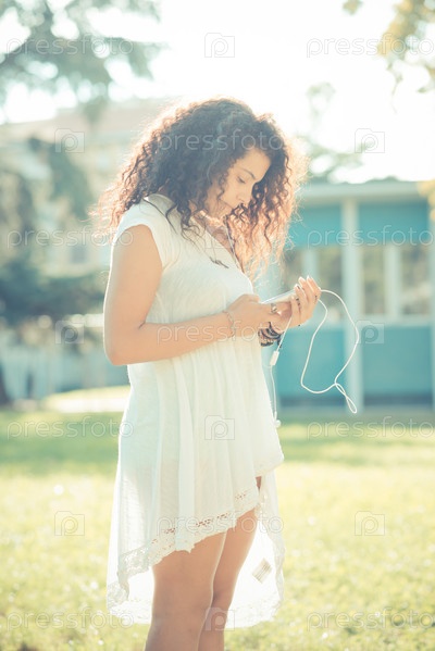 Марокканка слушает музыку на смартфоне
