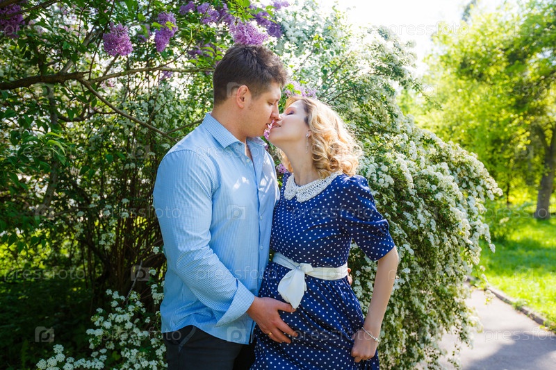 Беременная женщина с мужчиной на свежем воздухе