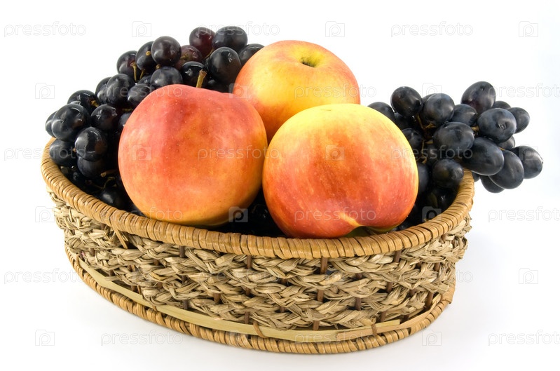 Фрукты в вазе на белом фоне