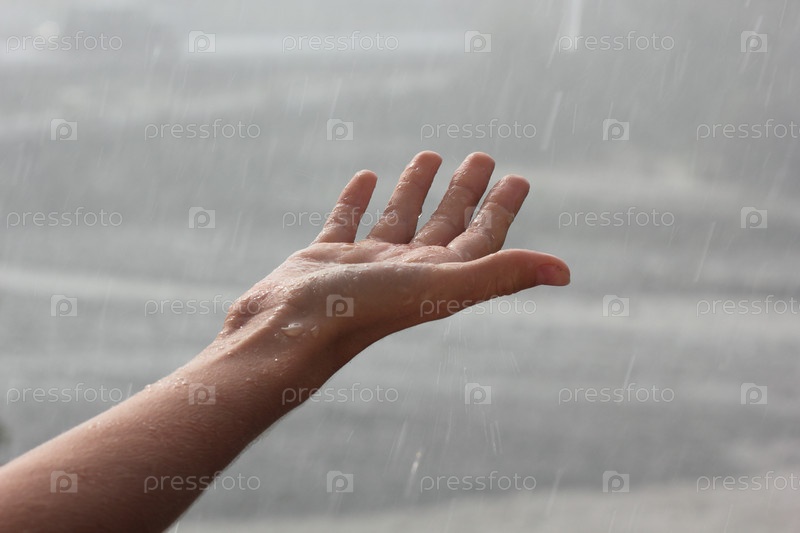 Рука ловит капли дождя