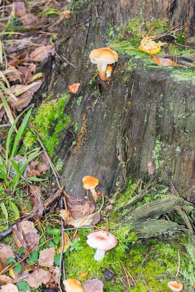 Грибы растут на старом пне