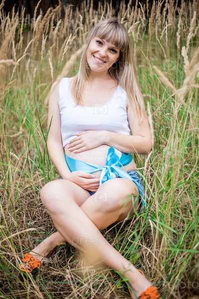 Беременная женщина на природе