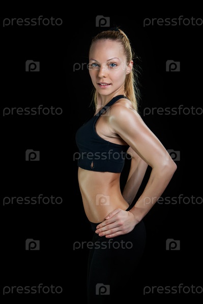 Спортивная молодая женщина на черном фоне
