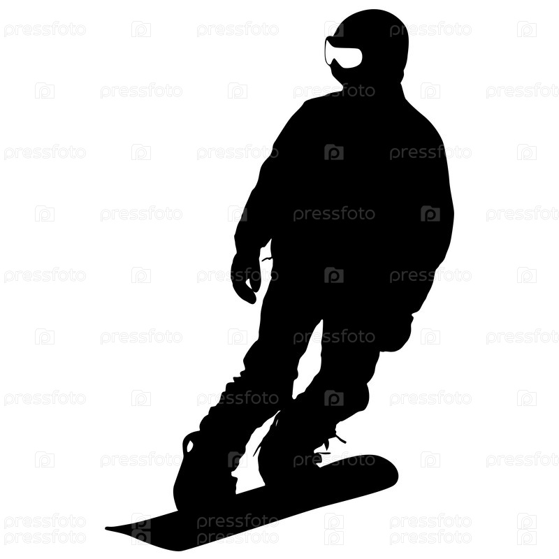 Сноубордист, черный силуэт на белом фоне