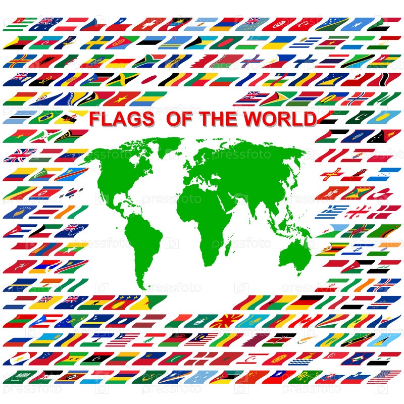 Флаги и карта мира на белом фоне