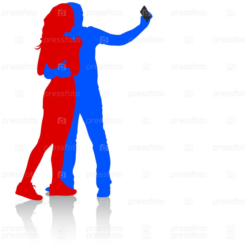 Силуэты фотографирующихся мужчины и женщины