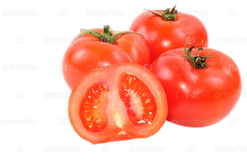 Свежие помидоры на белом фоне