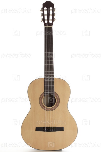 Акустическая гитара на белом фоне