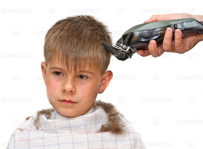 Рука парикмахера, стригущая мальчика