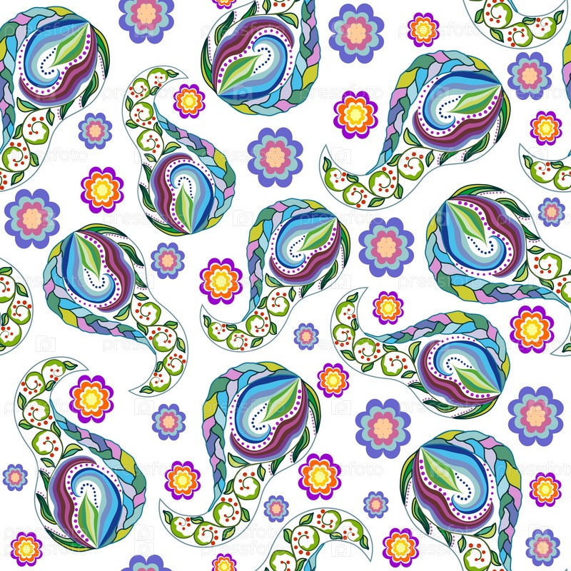 Бесшовный фон с декоративными цветами и листьями