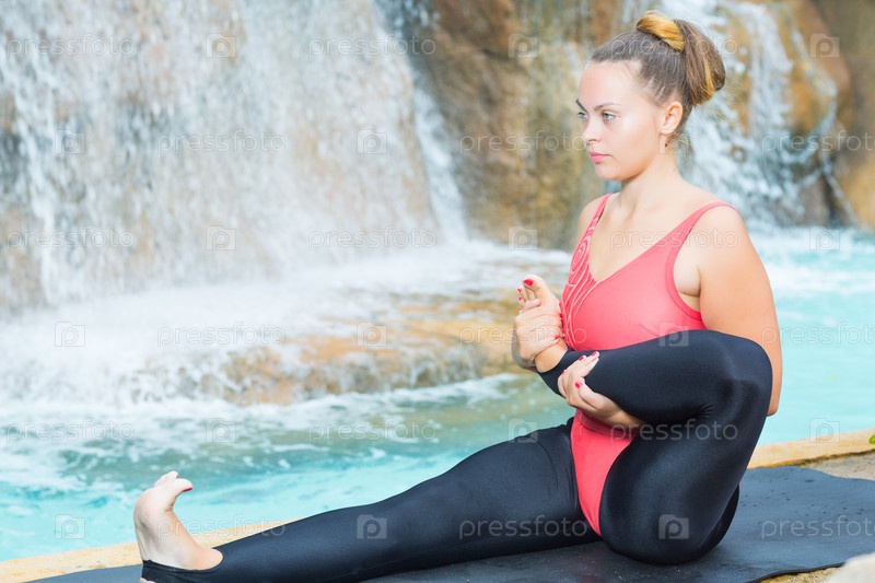 Женщина занимается йогой