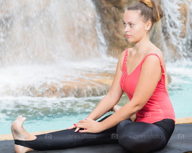 Женщина занимается йогой