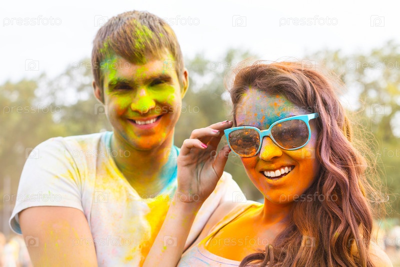 Портрет счастливой пары на фестивале Цвета