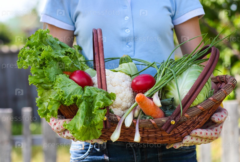 Женщина с урожаем овощей в руках