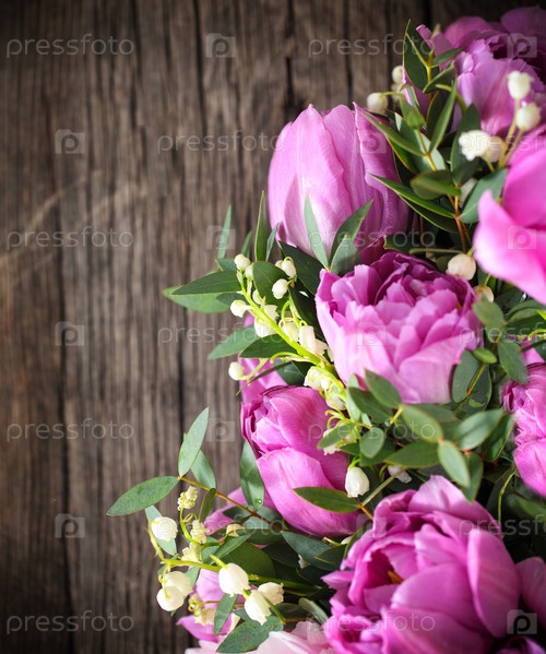 Букет из свежих розовых тюльпанов и ландышей