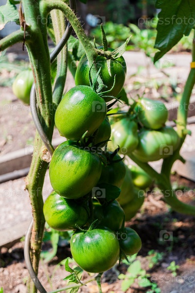 Зеленые помидоры, растущие на ветке
