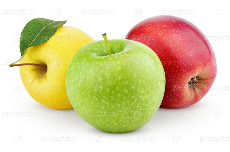 Желтые, зеленые и красные яблоки