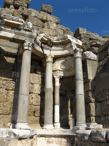 Руины древних стен на площади Агора, город Сиде, Турция