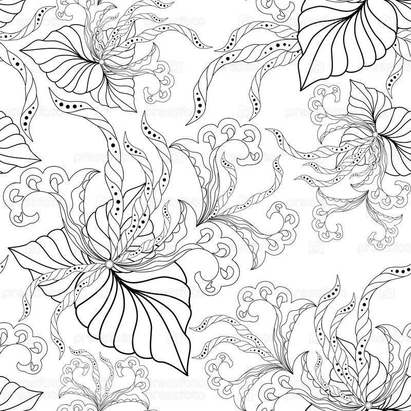 Бесшовный фон с декоративными цветами и листьями