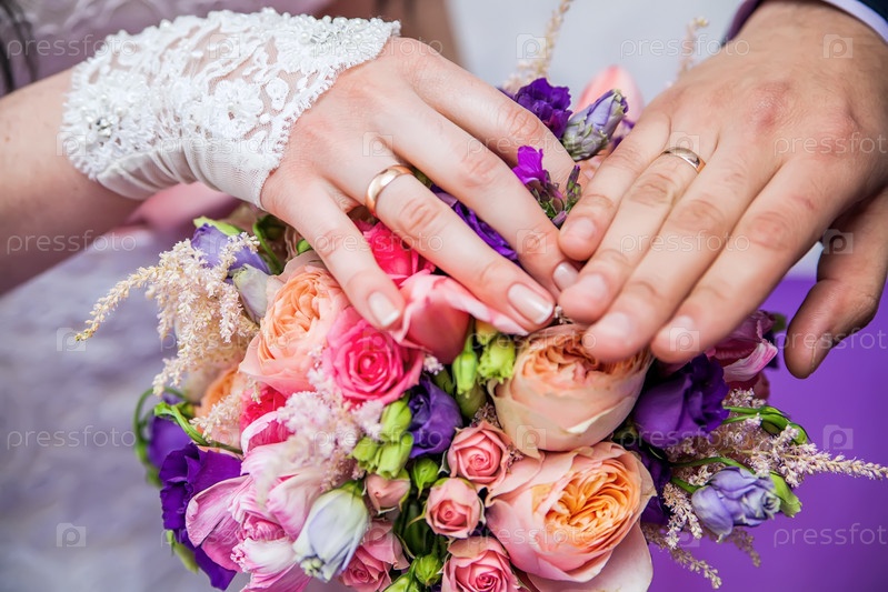 Обручальные кольца на руках жениха и невесты