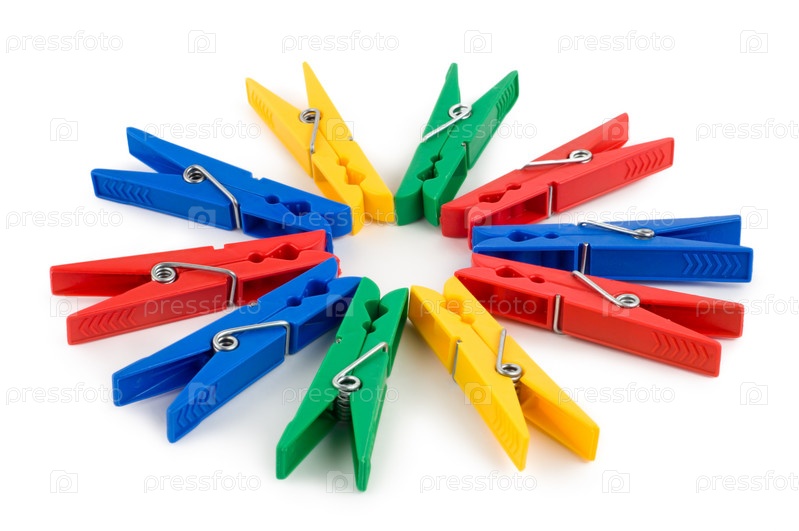 Разноцветные прищепки на белом фоне