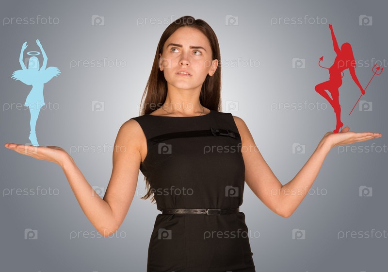 Женщина с ангелом и дьяволом в руках