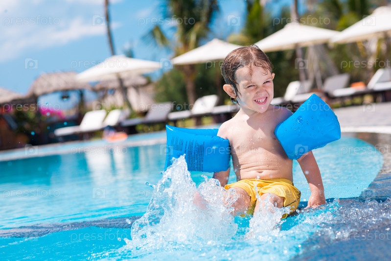 Дети купаются в бассейне