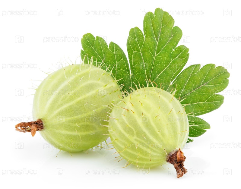Зеленый крыжовник с листьями