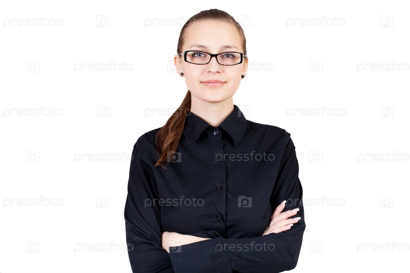 Деловая леди в очках на белом фоне
