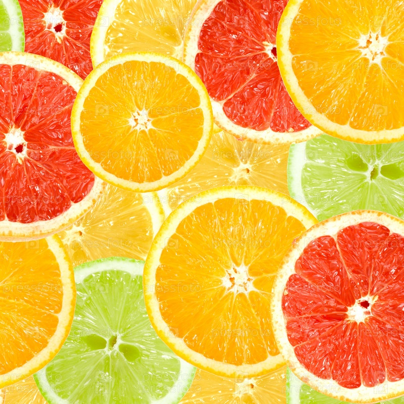 Фон с дольками апельсина, лайма и грейпфрута крупным планом