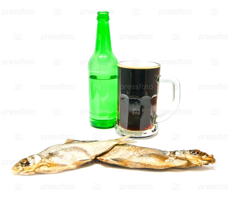 Кружка темного пива и соленая рыба