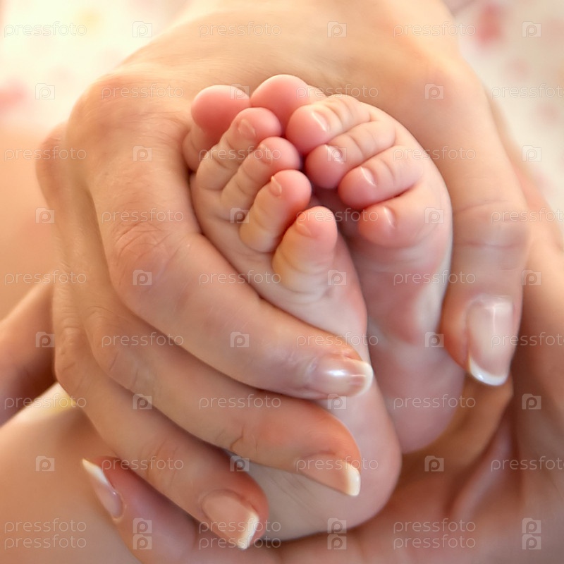 Крошечные ножки ребенка в маминых руках