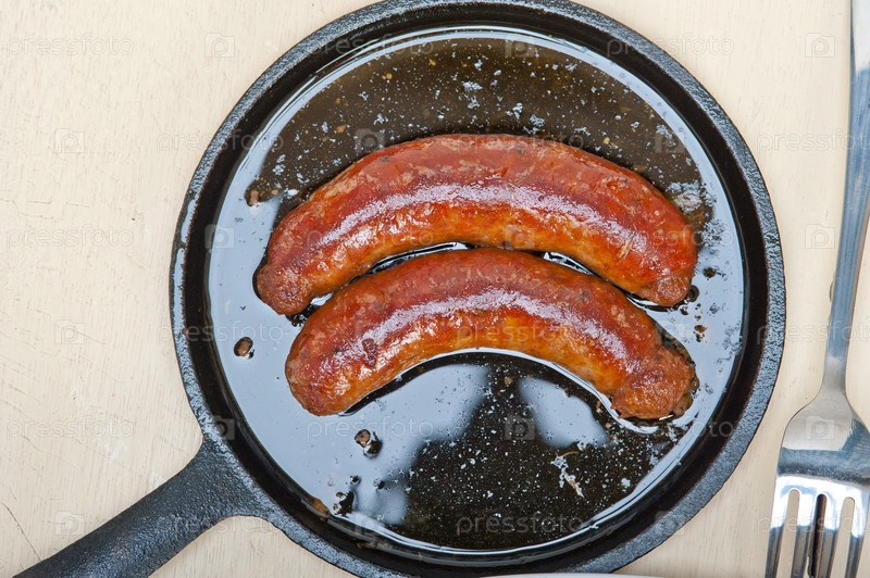 Говяжьи колбаски, приготовленные на железной сковороде