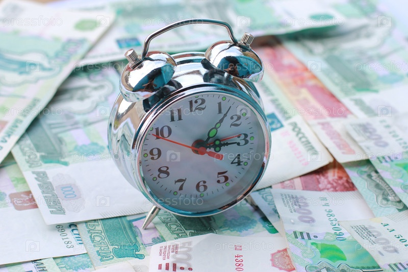 Будильник на российских деньгах