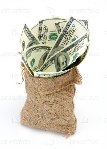 Мешочек с долларовыми купюрами крупным планом
