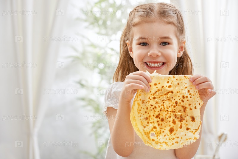 Девочка ест блины