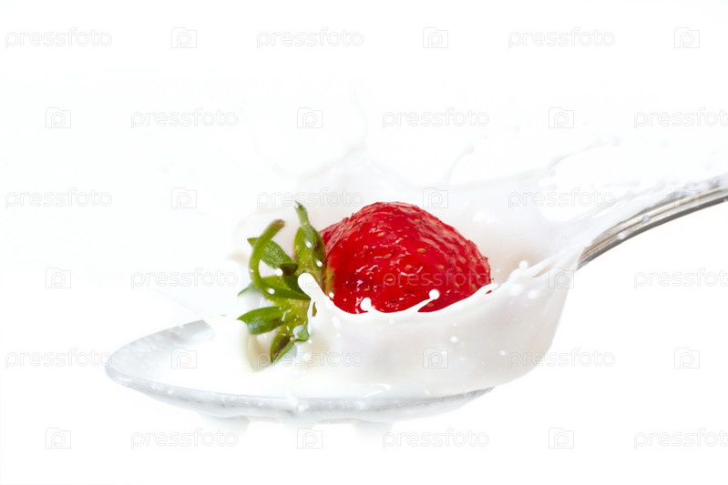 Ложка с ягодой клубники и молоком