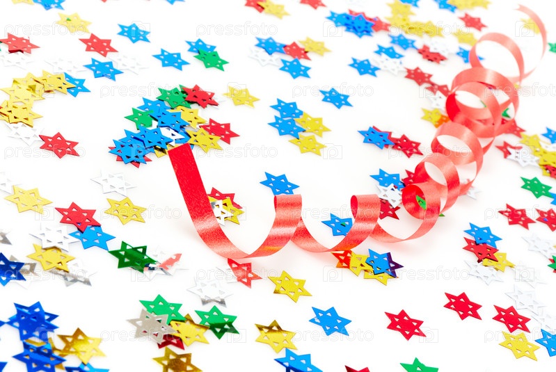 Разноцветные конфетти на белом фоне