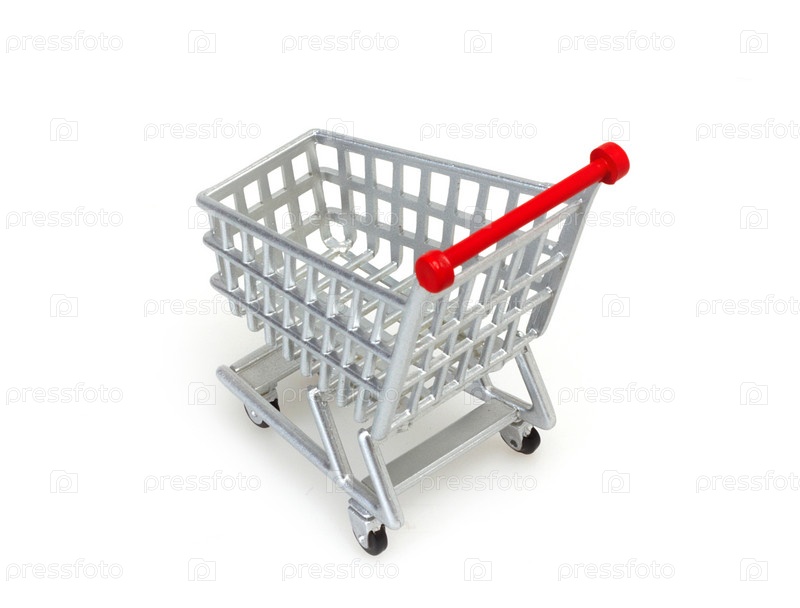 Пустая тележка для покупок на белом фоне