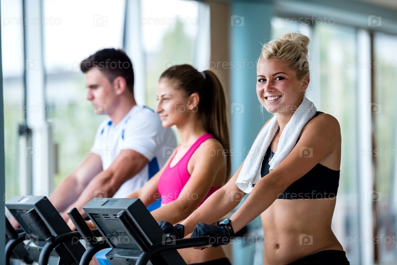 Люди делают упражнения на беговой дорожке в тренажерном зале