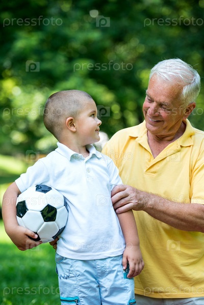 Мальчик с дедом в парке