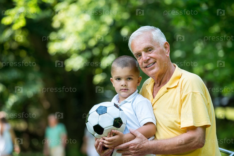 Мальчик с дедом в парке