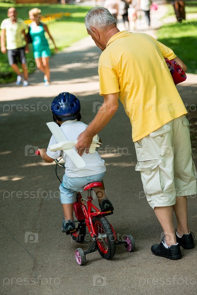 Дедушка с внуком в парке