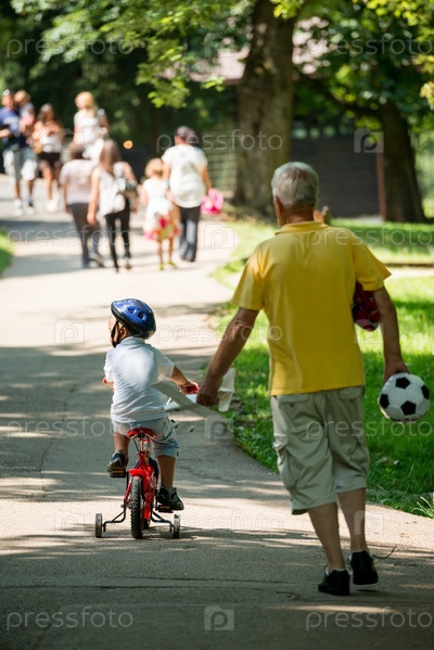 Дедушка с внуком в парке