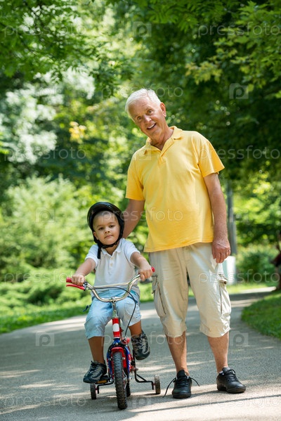 Дедушка с внуком в парке
