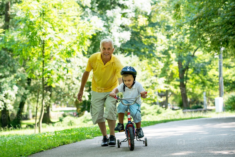 Дедушка с внуком отдыхают в парке